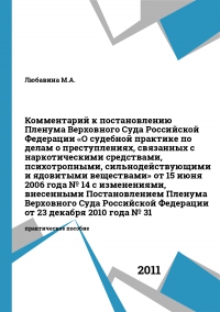 Комментарий к постановлению Пленума Верховного Суда Российской Федерации «О судебной практике по делам о преступлениях, связанных с наркотическими средствами, психотропными, сильнодействующими и ядовитыми веществами» от 15 июня 2006 года № 14 с изменениями, внесенными Постановлением Пленума Верховного Суда Российской Федерации от 23 декабря 2010 года № 31