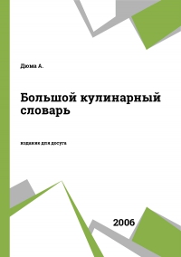 Дюма А. Большой кулинарный словарь / Дюма А.. — Москва : Человек, Олимпия, 2006. — 744 c. — ISBN 5-94299-084-0. — Текст : электронный // Цифровой образовательный ресурс IPR SMART : [сайт]. — URL: https://www.iprbookshop.ru/65556.html (дата обращения: 20.12.2025). — Режим доступа: для авторизир. пользователей