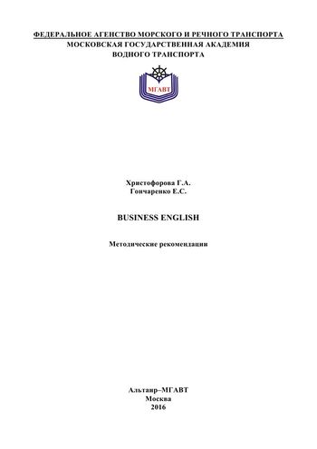 Христофорова Г.А. Business English : методические рекомендации / Христофорова Г.А., Гончаренко Е.С.. — Москва : Московская государственная академия водного транспорта, 2016. — 73 c. — Текст : электронный // Цифровой образовательный ресурс IPR SMART : [сайт]. — URL: https://www.iprbookshop.ru/65654.html (дата обращения: 16.12.2025). — Режим доступа: для авторизир. пользователей