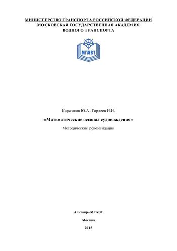 Коржиков, Ю. А. Математические основы судовождения : методические рекомендации / Ю. А. Коржиков, И. И. Гордеев. — Москва : Московская государственная академия водного транспорта, 2015. — 50 c. — Текст : электронный // Цифровой образовательный ресурс IPR SMART : [сайт]. — URL: https://www.iprbookshop.ru/65661.html (дата обращения: 10.01.2024). — Режим доступа: для авторизир. пользователей