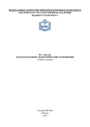 Забелин, В. Г. Международные экономические отношения : учебное пособие / В. Г. Забелин. — Москва : Московская государственная академия водного транспорта, 2016. — 109 c. — Текст : электронный // Цифровой образовательный ресурс IPR SMART : [сайт]. — URL: https://www.iprbookshop.ru/65664.html (дата обращения: 27.07.2023). — Режим доступа: для авторизир. пользователей