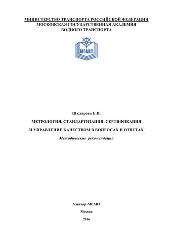 Шклярова Е.И. Метрология, стандартизация, сертификация и управление качеством в вопросах и ответах : методические рекомендации / Шклярова Е.И.. — Москва : Московская государственная академия водного транспорта, 2016. — 19 c. — Текст : электронный // Цифровой образовательный ресурс IPR SMART : [сайт]. — URL: https://www.iprbookshop.ru/65667.html (дата обращения: 05.12.2025). — Режим доступа: для авторизир. пользователей