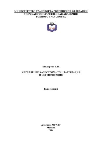 Шклярова, Е. И. Управление качеством, стандартизация и сертификация : конспект лекций / Е. И. Шклярова. — Москва : Московская государственная академия водного транспорта, 2016. — 102 c. — Текст : электронный // Цифровой образовательный ресурс IPR SMART : [сайт]. — URL: https://www.iprbookshop.ru/65687.html (дата обращения: 13.11.2023). — Режим доступа: для авторизир. пользователей