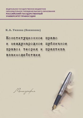 (Конюхова), И. А. Конституционное право и международное публичное право. Теория и практика взаимодействия : монография / Умнова И. А. (Конюхова). — Москва : Российский государственный университет правосудия, 2016. — 672 c. — ISBN 978-5-93916-526-6. — Текст : электронный // Цифровой образовательный ресурс IPR SMART : [сайт]. — URL: https://www.iprbookshop.ru/65859.html (дата обращения: 02.03.2025). — Режим доступа: для авторизир. пользователей