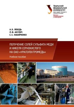 Лебедь, А. Б. Получение солей сульфата меди и никеля сернокислого на ОАО «Уралэлектромедь» : учебное пособие / А. Б. Лебедь, Л. Ф. Акулич, C. С. Набойченко. — Екатеринбург : Уральский федеральный университет, ЭБС АСВ, 2015. — 136 c. — ISBN 978-5-7996-1390-7. — Текст : электронный // Цифровой образовательный ресурс IPR SMART : [сайт]. — URL: https://www.iprbookshop.ru/65966.html (дата обращения: 18.01.2024). — Режим доступа: для авторизир. пользователей