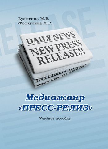 Бусыгина М.В. Медиажанр «пресс-релиз» : учебное пособие / Бусыгина М.В., Желтухина М.Р.. — Волгоград : Волгоградский государственный социально-педагогический университет, ПринТерра-Дизайн, 2016. — 108 c. — ISBN 978-5-98424-200-4. — Текст : электронный // Цифровой образовательный ресурс IPR SMART : [сайт]. — URL: https://www.iprbookshop.ru/66641.html (дата обращения: 05.12.2025). — Режим доступа: для авторизир. пользователей