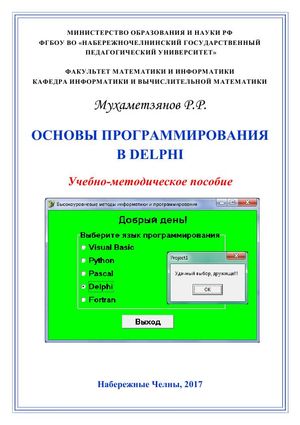Мухаметзянов, Р. Р. Основы программирования в Delphi : учебно-методическое пособие / Р. Р. Мухаметзянов. — Набережные Челны : Набережночелнинский государственный педагогический университет, 2017. — 137 c. — Текст : электронный // Цифровой образовательный ресурс IPR SMART : [сайт]. — URL: https://www.iprbookshop.ru/66811.html (дата обращения: 28.01.2025). — Режим доступа: для авторизир. пользователей