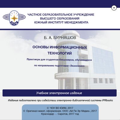 Бурняшов Б.А. Основы информационных технологий : практикум для студентов-бакалавров, обучающихся по направлению подготовки «Экономика» / Бурняшов Б.А.. — Краснодар, Саратов : Южный институт менеджмента, Ай Пи Эр Медиа, 2017. — 83 c. — Текст : электронный // Цифровой образовательный ресурс IPR SMART : [сайт]. — URL: https://www.iprbookshop.ru/67214.html (дата обращения: 06.12.2025). — Режим доступа: для авторизир. пользователей