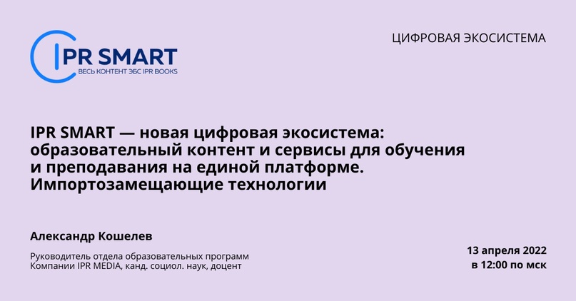 «IPR SMART — новая цифровая экосистема: образовательный контент и сервисы для обучения и преподавания на единой платформе. Импортозамещающие технологии».