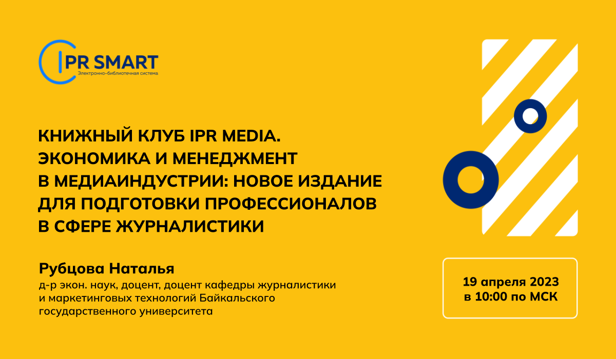 1) Вебинар «Книжный клуб IPR MEDIA. Экономика и менеджмент в медиаиндустрии: новое издание для подготовки профессионалов в сфере журналистики»
