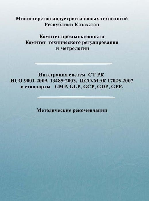 Интеграция систем СТ РК ИСО 9001-2009, 13485:2003, ИСО/МЭК 17025-2007 в стандарты GМР, GLР, GСР, GDР, GРР. Методические рекомендации