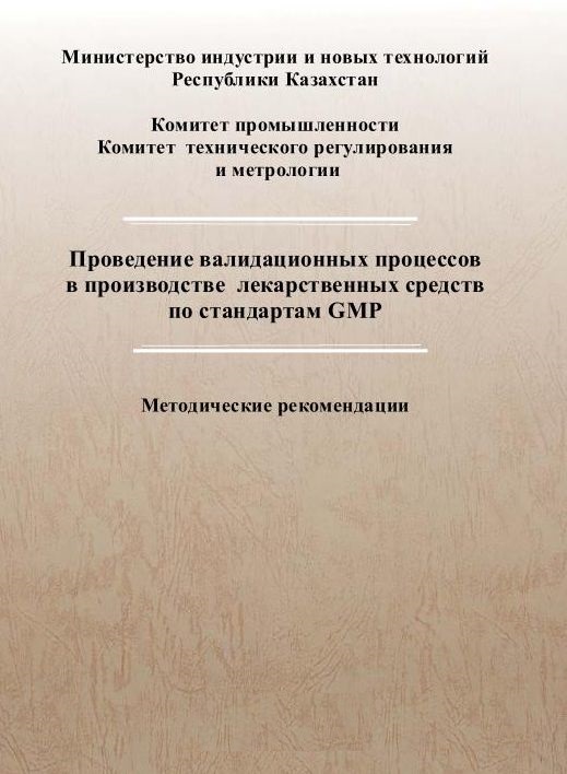 В настоящих методических рекомендациях представлены требования «Правил организации производства и контроля качества лекарственных средств (ОМР)» для обеспечения подтверждения, необходимого для доказательства пригодности качества лекарственного препарата, на примере опытного производства РГП «Научный центр противоинфекционных препаратов». Методические рекомендации является общим руководством и устанавливает основные требования к проведению валидации процессов и условий производства лекарственных средств. Рекомендованы для предприятий, осуществляющих, независимо от их ведомственной подчиненности и форм собственности, производство лекарственных средств. Также рекомендованы для научных работников, преподавателям фармацевтических факультетов ВУЗов и других представителей в сфере лекарственного обращения.
