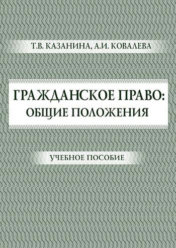 Казанина, Т. В. Гражданское право: общие положения : учебное пособие / Т. В. Казанина, А. И. Ковалева. — Люберцы : Российская таможенная академия, 2015. — 186 c. — ISBN 978-5-9590-0842-0. — Текст : электронный // Цифровой образовательный ресурс IPR SMART : [сайт]. — URL: https://www.iprbookshop.ru/69705.html (дата обращения: 19.06.2023). — Режим доступа: для авторизир. пользователей