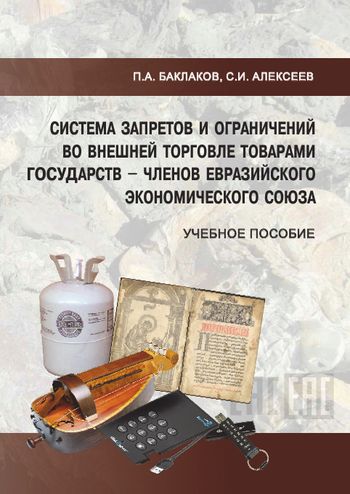 Баклаков, П. А. Система запретов и ограничений во внешней торговле товарами государств - членов Евразийского экономического союза : учебное пособие / П. А. Баклаков, С. И. Алексеев. — Москва : Российская таможенная академия, 2015. — 220 c. — ISBN 978-5-9590-0860-4. — Текст : электронный // Цифровой образовательный ресурс IPR SMART : [сайт]. — URL: https://www.iprbookshop.ru/69781.html (дата обращения: 05.02.2024). — Режим доступа: для авторизир. пользователей