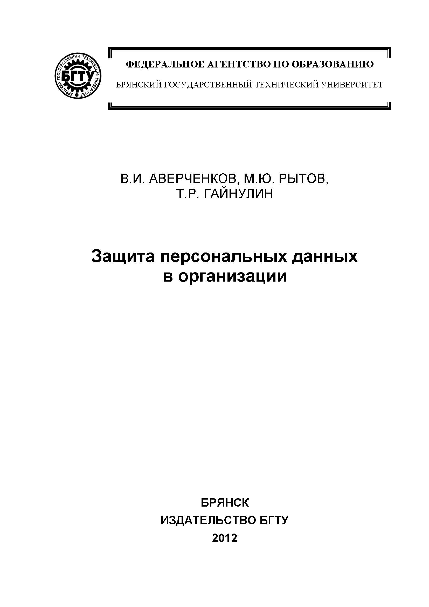 Аверченков, В. И. Защита персональных данных в организации : монография / В. И. Аверченков, М. Ю. Рытов, Т. Р. Гайнулин. — Брянск : Брянский государственный технический университет, 2012. — 124 c. — ISBN 5-89838-382-4. — Текст : электронный // Цифровой образовательный ресурс IPR SMART : [сайт]. — URL: https://www.iprbookshop.ru/6993.html (дата обращения: 13.08.2025). — Режим доступа: для авторизир. пользователей