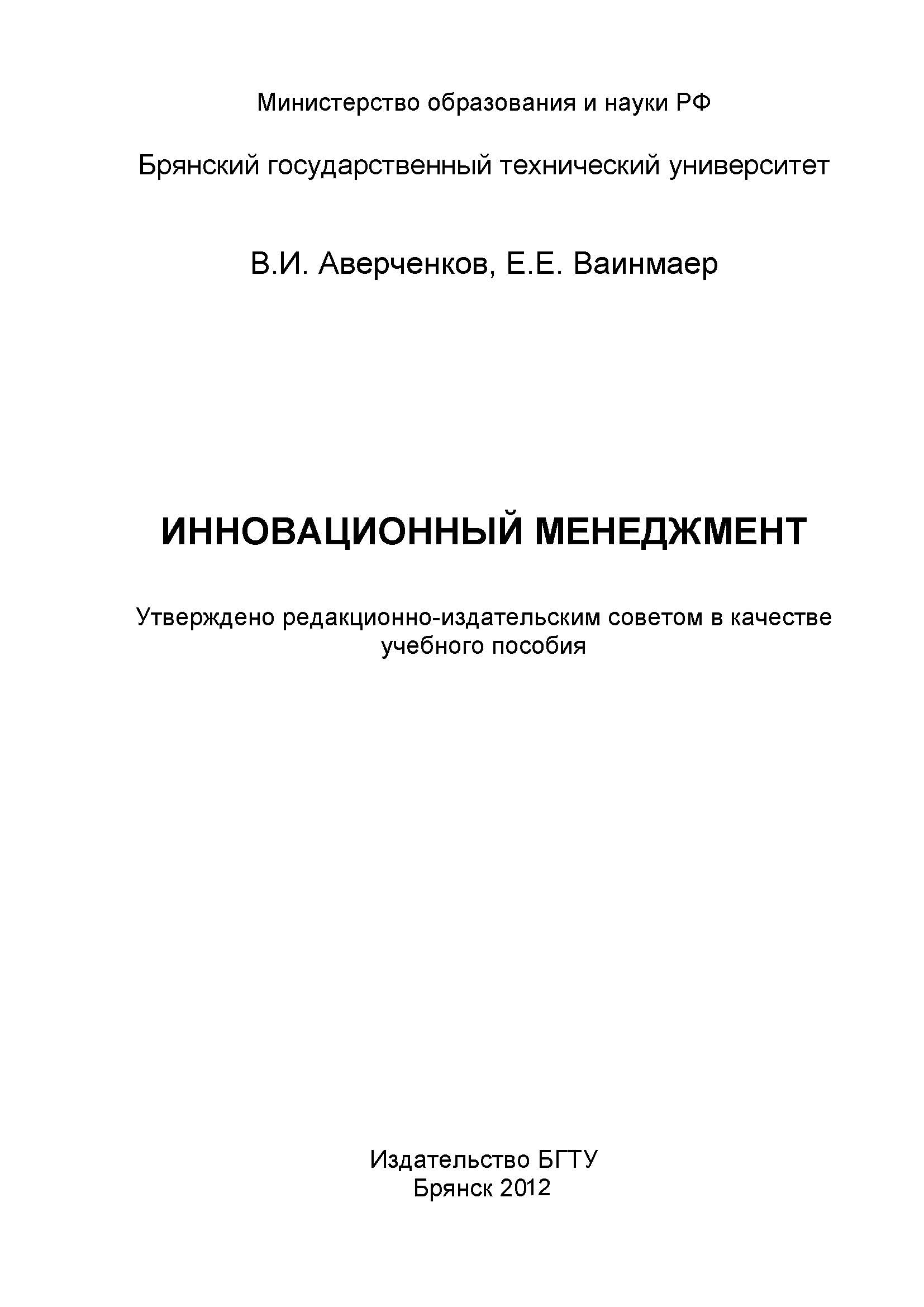 Аверченков, В. И. Инновационный менеджмент : учебное пособие для вузов / В. И. Аверченков, Е. Е. Ваинмаер. — Брянск : Брянский государственный технический университет, 2012. — 293 c. — ISBN 5-89838-134-1. — Текст : электронный // Цифровой образовательный ресурс IPR SMART : [сайт]. — URL: https://www.iprbookshop.ru/6995.html (дата обращения: 13.06.2025). — Режим доступа: для авторизир. пользователей