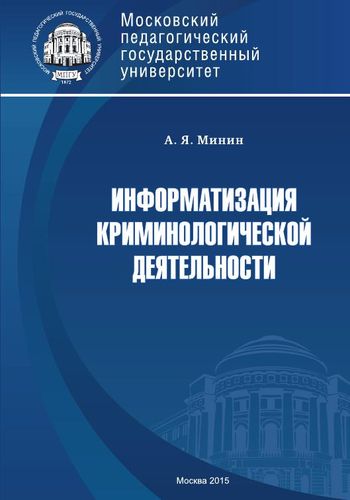 Минин, А. Я. Информатизация криминологической деятельности. Теория и методология : монография / А. Я. Минин. — Москва : Московский педагогический государственный университет, 2015. — 168 c. — ISBN 978-5-4263-0244-0. — Текст : электронный // Цифровой образовательный ресурс IPR SMART : [сайт]. — URL: https://www.iprbookshop.ru/70002.html (дата обращения: 30.07.2023). — Режим доступа: для авторизир. пользователей