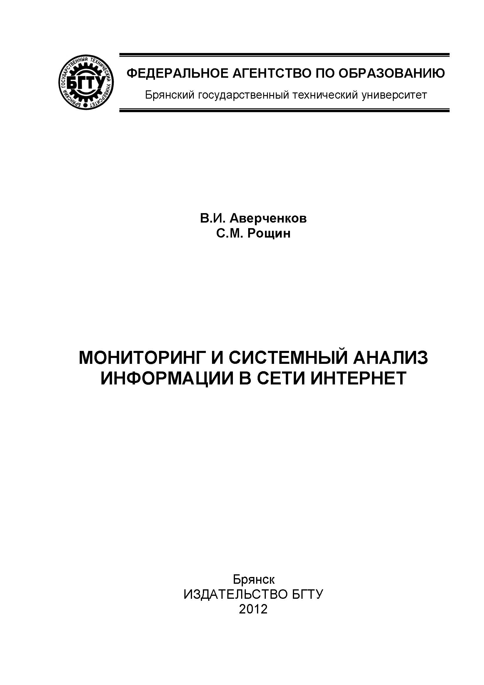 Аверченков, В. И. Мониторинг и системный анализ информации в сети Интернет : монография / В. И. Аверченков, С. М. Рощин. — Брянск : Брянский государственный технический университет, 2012. — 160 c. — ISBN 5-89838-188-0. — Текст : электронный // Цифровой образовательный ресурс IPR SMART : [сайт]. — URL: https://www.iprbookshop.ru/7001.html (дата обращения: 04.09.2025). — Режим доступа: для авторизир. пользователей