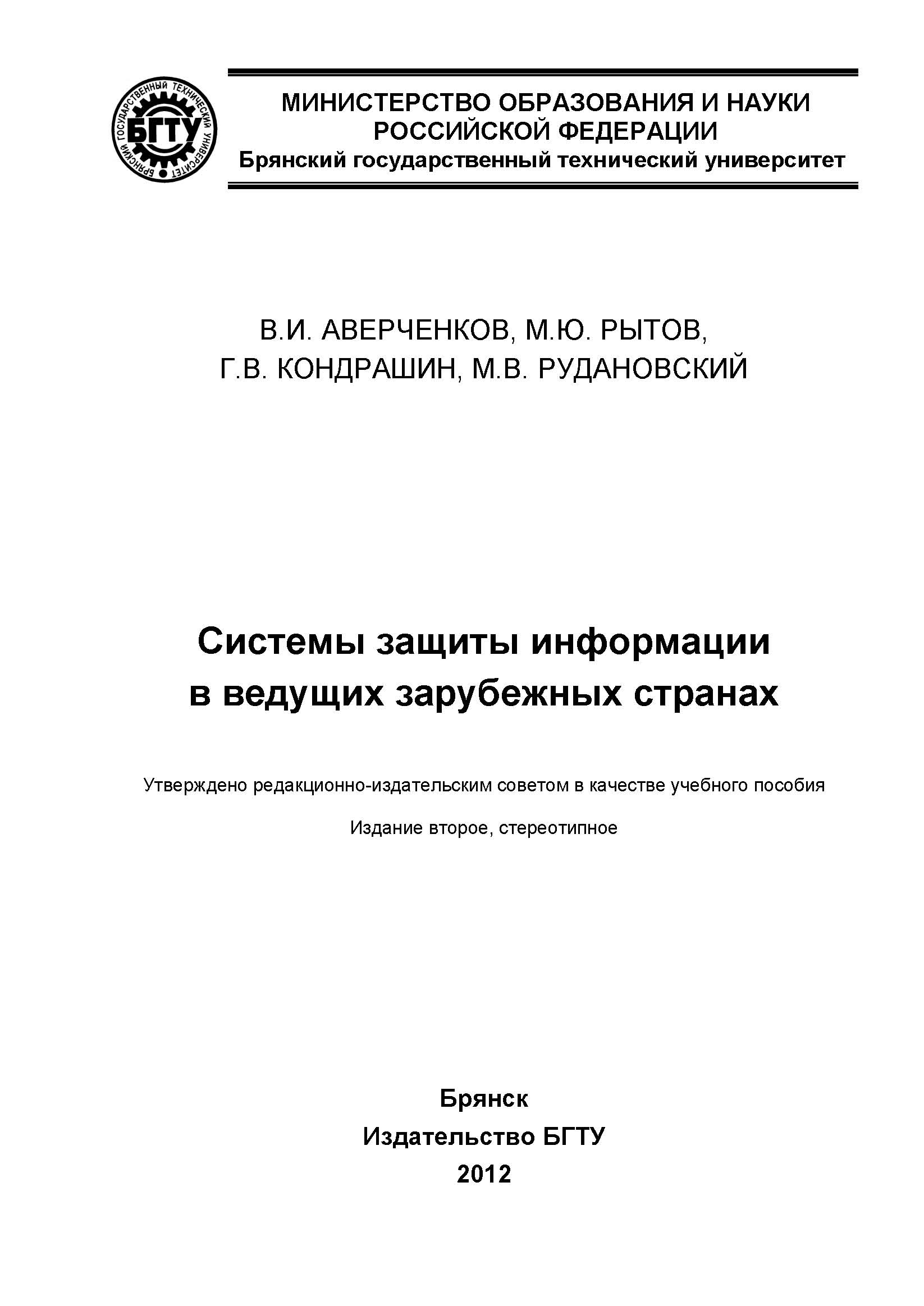 Системы защиты информации в ведущих зарубежных странах : учебное пособие для вузов / В. И. Аверченков, М. Ю. Рытов, Г. В. Кондрашин, М. В. Рудановский. — Брянск : Брянский государственный технический университет, 2012. — 224 c. — ISBN 978-89838-488-3. — Текст : электронный // Цифровой образовательный ресурс IPR SMART : [сайт]. — URL: https://www.iprbookshop.ru/7007.html (дата обращения: 24.09.2025). — Режим доступа: для авторизир. пользователей