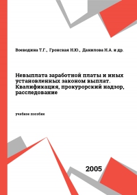 Невыплата заработной платы и иных установленных законом выплат. Квалификация, прокурорский надзор, расследование / Т.Г. Воеводина [и др.].. — Санкт-Петербург : Санкт-Петербургский юридический институт (филиал) Академии Генеральной прокуратуры РФ, 2005. — 88 c. — Текст : электронный // Цифровой образовательный ресурс IPR SMART : [сайт]. — URL: https://www.iprbookshop.ru/71655.html (дата обращения: 19.12.2025). — Режим доступа: для авторизир. пользователей