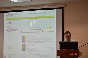 Директор ЭБС Сергей Иванов рассказал собравшимся о новинках системы, в процессе «виртуальной экскурсии» по закрытой части сайта www.iprbookshop.ru наглядно продемонстрировал возможности работы с книгами, статистикой, другими сервисами платформы. Участников семинаров заинтересовали способы интеграции ЭБС и электронно-образовательной среды вузов. Также докладчику были заданы вопросы по технической стороне работы с электронной библиотекой.
