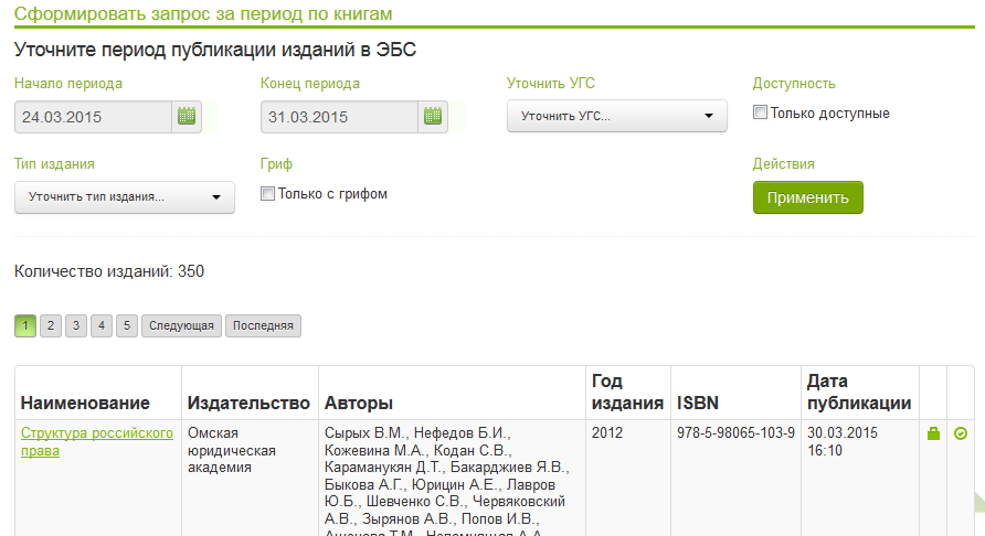 Кроме этого, появилась возможность выгружать обновления книг по интересующим укрупненным группам специальностей и типам изданий. Для этого при формировании запроса необходимо дополнительно уточнить эти параметры.