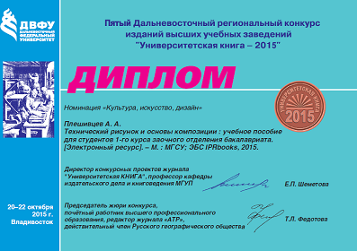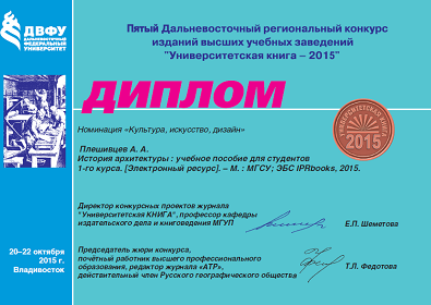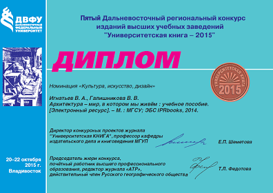 В номинации «Культура, искусство, дизайн» дипломы присуждены работам А.А. Плешивцева «Технический рисунок и основы композиции: учебное пособие для студентов 1-го курса заочного отделения бакалавриата» и «История архитектуры: учебное пособие для студентов 1-го курса», а также книге В.А. Игнатьев и В.В. Галишникова «Архитектура - мир, в котором мы живем: учебное пособие».