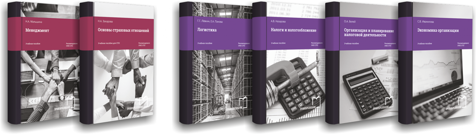 Учебные пособия изданы по более 20 дисциплинам и соответствуют ФГОС СПО по ряду профессий и специальностей, таких как: «Страховое дело», «Экономика и бухгалтерский учет (по отраслям)», «Операционная деятельность в логистике», «Гостиничный сервис», «Туризм», «Коммерция» и др.