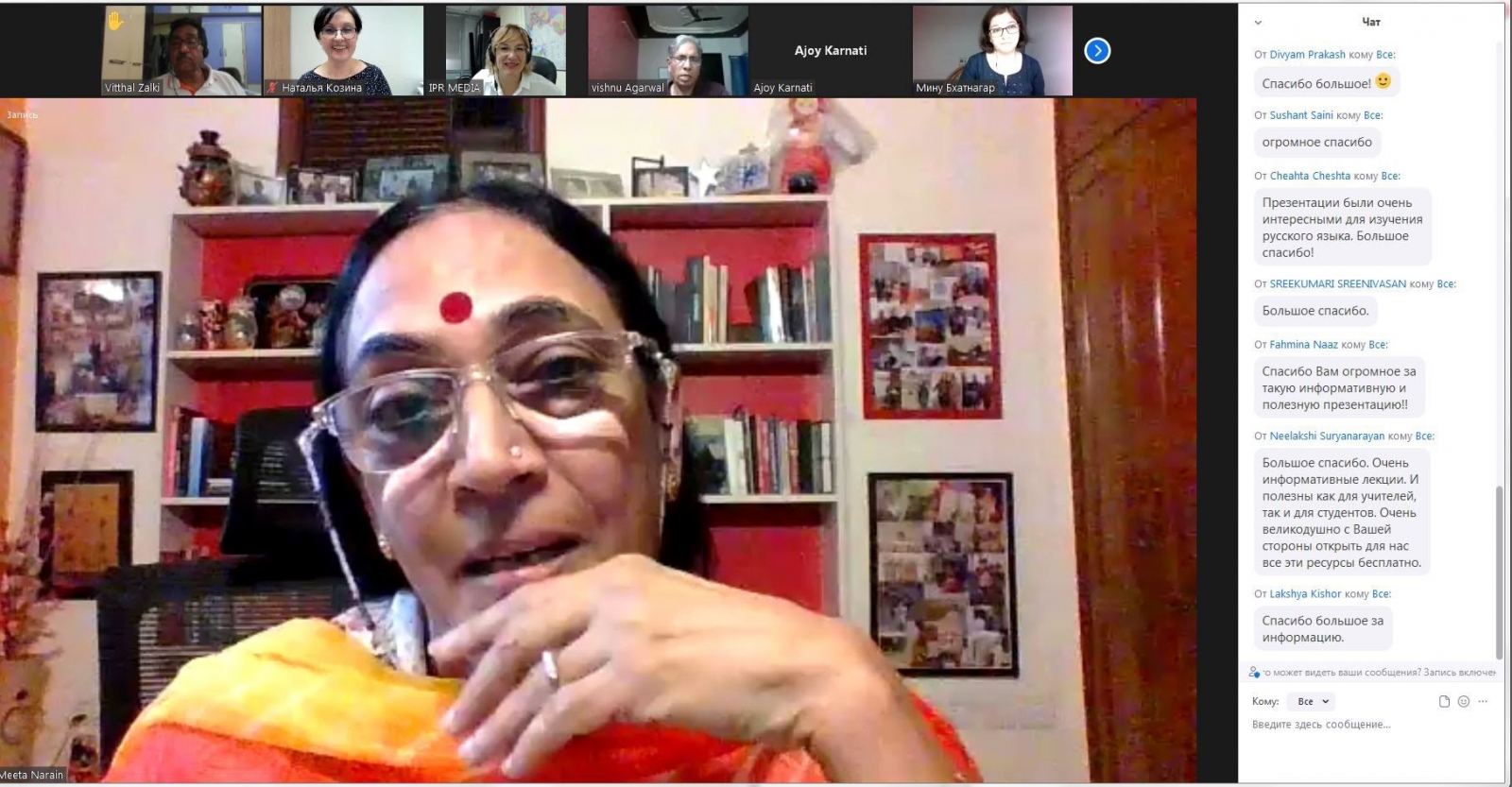 Компания IPR MEDIA и Индийская Ассоциация преподавателей русского языка INDAPRYAL 14 сентября организовали онлайн-семинар «Современные электронные ресурсы для преподавателей русского языка в Индии». Провела семинар директор по развитию и продажам компании IPR MEDIA Вита Кутуева, а участниками мероприятия стали преподаватели и аспиранты вузов Индии.