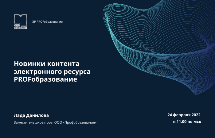 11:00 (МСК) «Новинки контента электронного ресурса PROFобразование».