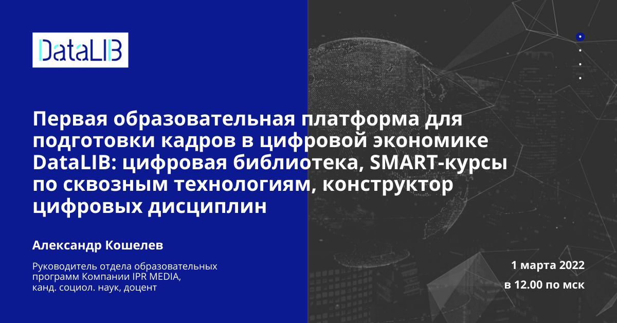 «Первая образовательная платформа для подготовки кадров в цифровой экономике DataLIB: цифровая библиотека, SMART-курсы по сквозным технологиям, конструктор цифровых дисциплин».