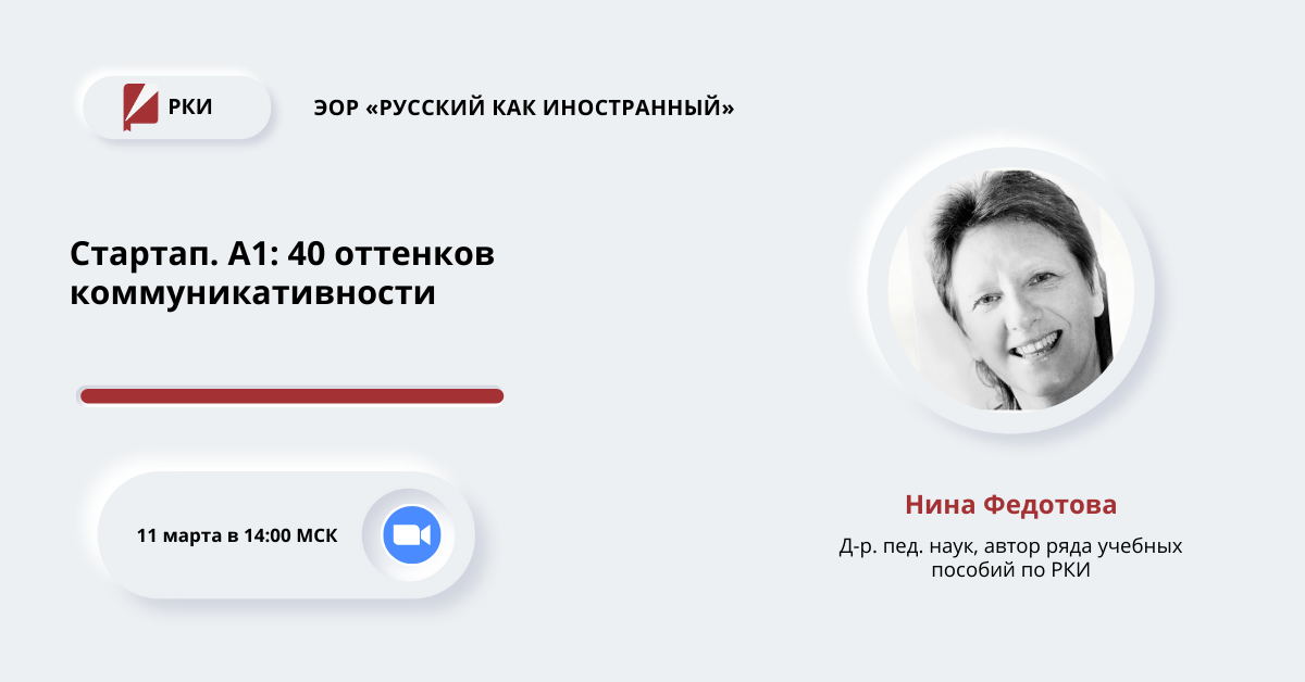 Спикер: Федотова Нина Леонидовна — д-р. пед. наук, автор ряда учебных пособий по РКИ.
