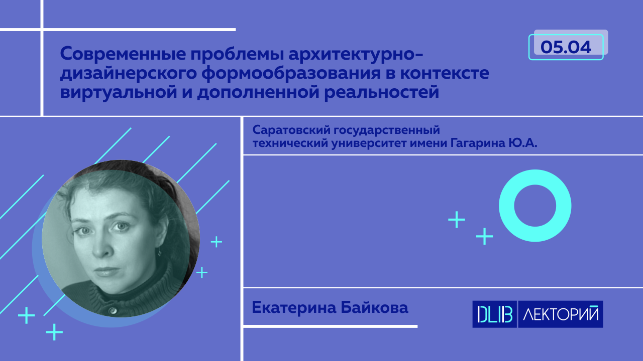 «Современные проблемы архитектурно-дизайнерского формообразования в контексте виртуальной и дополненной реальностей». Спикер: Екатерина Байкова — профессор кафедры дизайна архитектурной среды, УРБАС, СГТУ имени Гагарина Ю.А. доктор культурологии, член союза архитекторов.