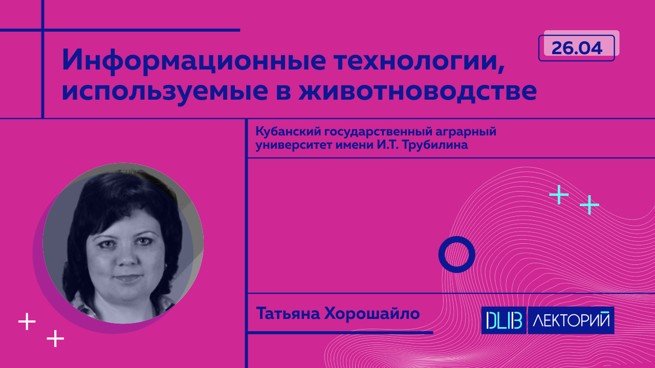 «Информационные технологии, используемые в животноводстве». Спикер: Татьяна Хорошайло — кандидат сельскохозяйственных наук Кубанского государственного аграрного университета имени И.Т. Трубилина.
