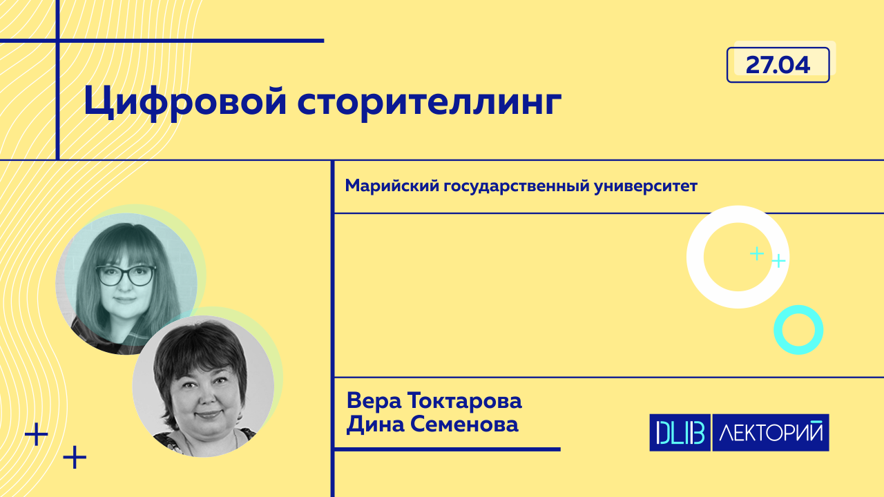 «Цифровой сторителлинг». Спикеры: Вера Токтарова — доктор педагогических наук, профессор кафедры прикладной математики и информатики Марийского государственного университета и Дина Семенова — кандидат педагогических наук, руководитель проектного офиса Марийского государственного университета.