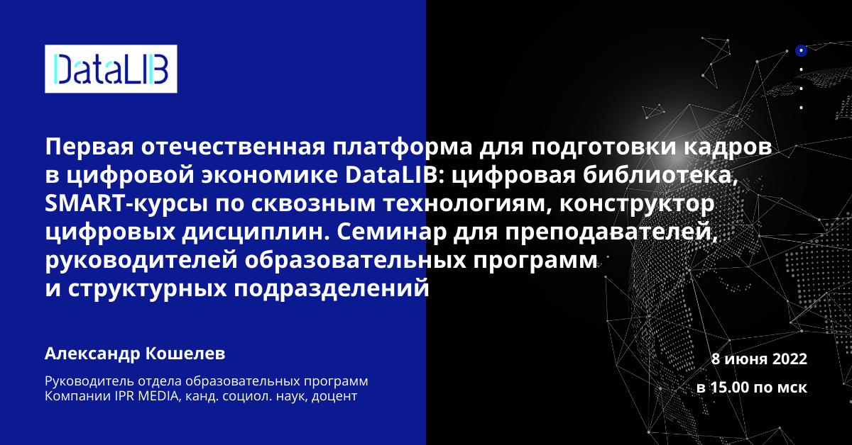 «Первая отечественная платформа для подготовки кадров в цифровой экономике DataLIB: цифровая библиотека, SMART-курсы по сквозным технологиям, конструктор цифровых дисциплин. Семинар для преподавателей, руководителей образовательных программ и структурных подразделений».