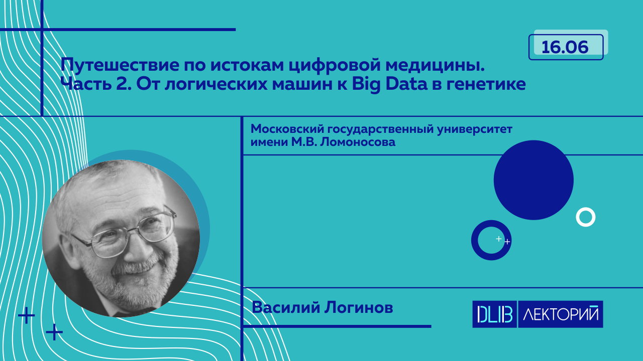 16 июня в 12.00 (МСК) Логинов Василий Анатольевич, доктор медицинских наук, профессор кафедры экологической и экстремальной медицины, заместитель декана по внеучебной работе МГУ имени М.В. Ломоносова расскажет о путешествии по истокам цифровой медицины. Это будет вторая часть большой лекции, которая посвящена логическим машинам и большим данным в генетике.