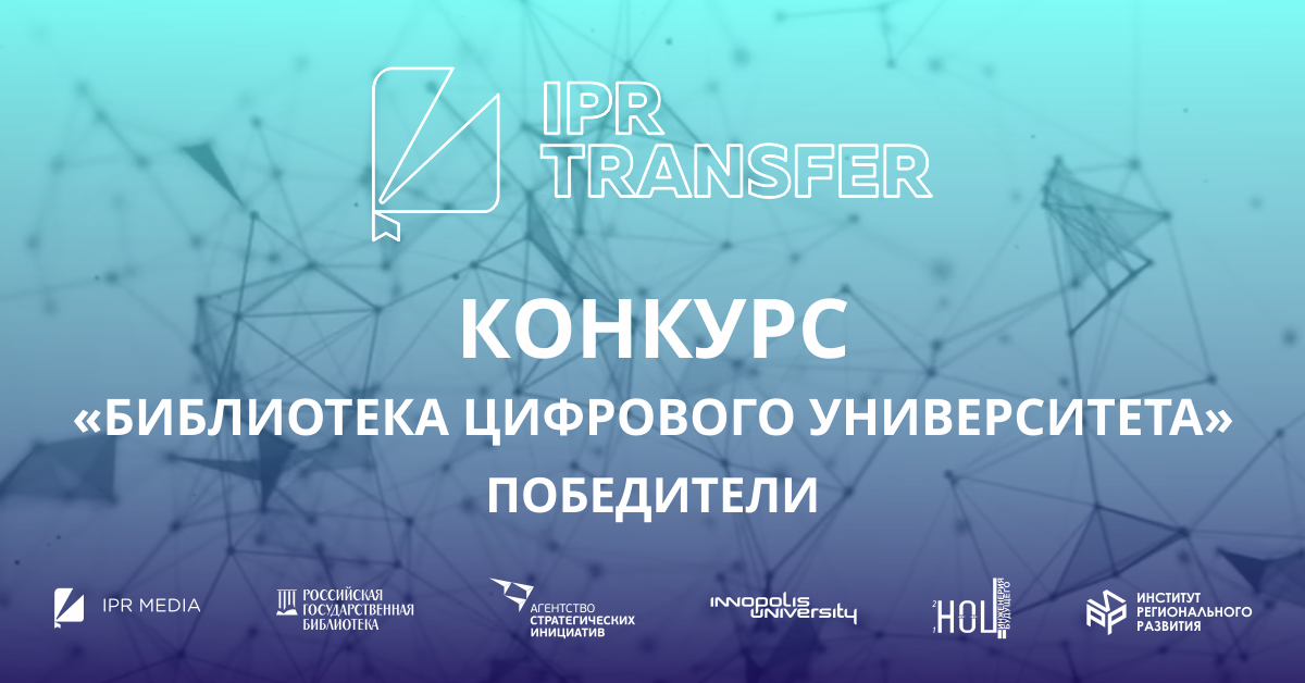 Первый Всероссийский конкурс авторских публикаций по сквозным цифровым технологиям «Библиотека цифрового университета» организован компанией IPR MEDIA — одним из ведущих российских разработчиков инновационных образовательных продуктов — при поддержке стратегических партнеров: Университета Иннополис и Агентства стратегических инициатив.