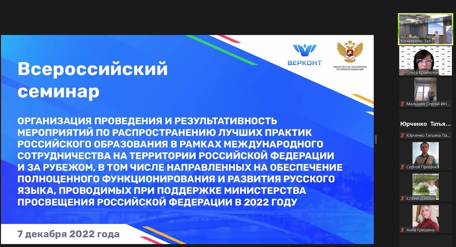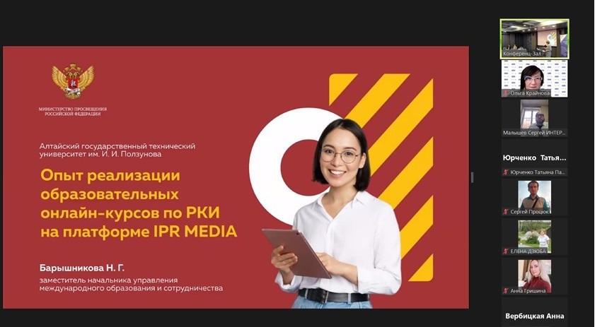 Состоялся Всероссийский семинар по распространению лучших практик российского образования в РФ и за рубежом. Мероприятие организовано ООО «Верконт Сервис». О проделанной работе в рамках реализации гранта Министерства просвещения рассказали Наталья Барышникова, заместитель начальника управления международного образования и сотрудничества Алтайского государственного технического университета им. И.И. Ползунова, и руководитель проектного офиса Компании «Ай Пи Ар Медиа» Ольга Крайнова. Был представлен опыт реализации образовательных онлайн-курсов на электронном ресурсе «Русский как иностранный»; авторами онлайн-курсов являются преподаватели АлтГТУ: высококвалифицированные русисты и преподаватели РКИ.