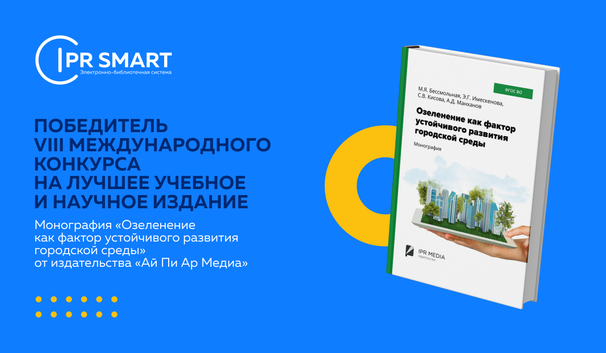 Монография, выпущенная издательством «Ай Пи Ар Медиа», «Озеленение как фактор устойчивого развития городской среды» от коллектива авторов Бурятской государственной сельскохозяйственной академии им. В.Р. Филлипова стала одним из победителей VIII Международного конкурса на лучшее учебное и научное издание. Книга заняла второе место в номинации «Лучшее печатное научное издание по сельскохозяйственным наукам».