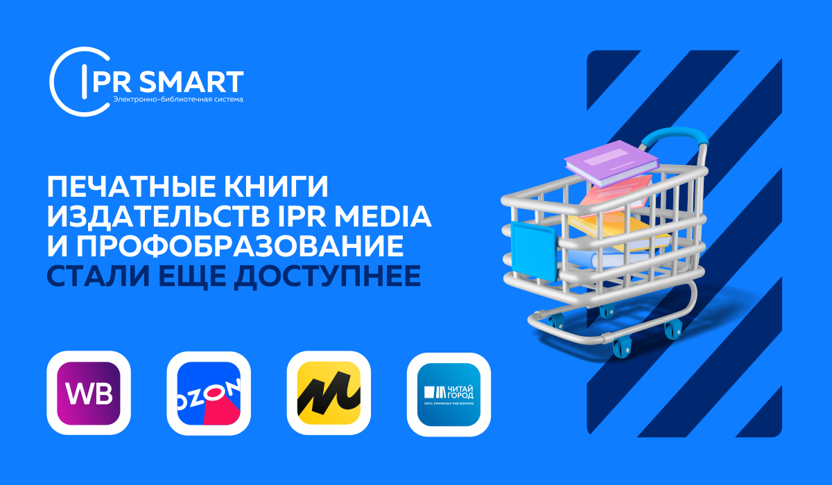 Заказать печатные книги издательств IPR MEDIA, Профобразование и Вузовское образование теперь стало намного легче. Книги доступны для покупки на ведущих маркетплейсах страны (OZON, Wildberries, Яндекс.Маркет), в интернет-магазине «Читай-город», а также через форму заявки непосредственно на сайте IPR SMART.