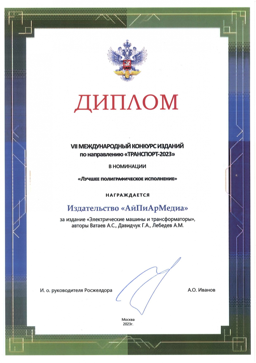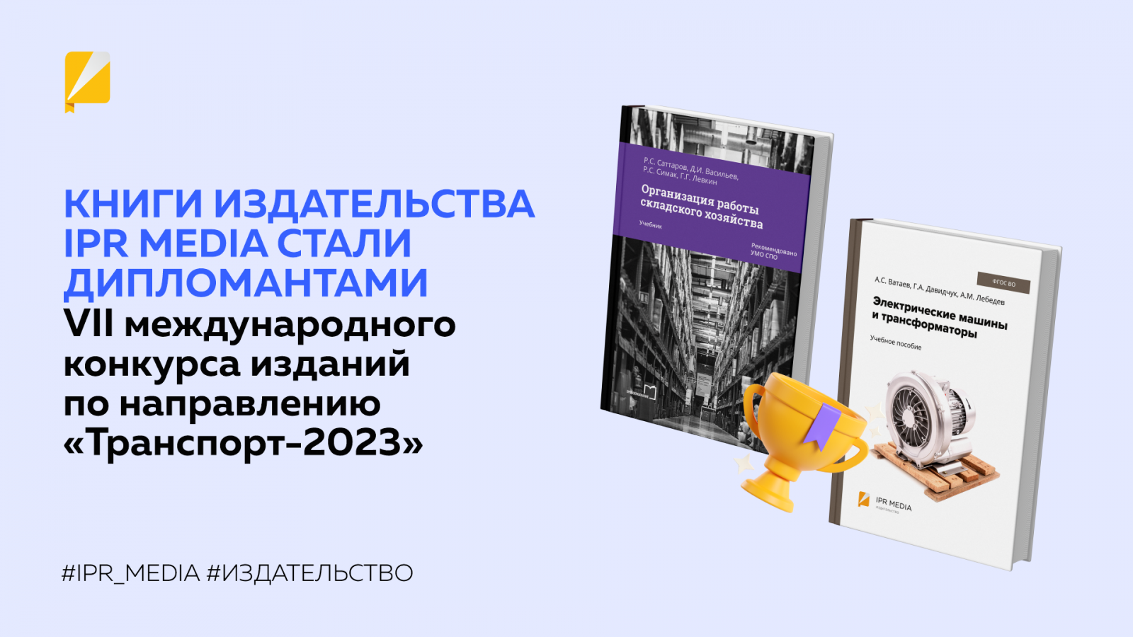 Подведены итоги конкурса изданий «Транспорт-2023», который проводился на базе ФГБУ ДПО «Учебно-методический центр по образованию на железнодорожном транспорте» с 20 марта по 25 ноября 2023 года. Книги издательства «Ай Пи Ар Медиа» были высоко оценены экспертным жюри в двух номинациях: «Лучшее издание для среднего профессионального образования» и «Лучшее полиграфическое исполнение».