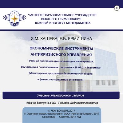Хашева З.М. Экономические инструменты антикризисного управления : учебная программа дисциплины для магистрантов, обучающихся по направлению подготовки 38.04.01 «Экономика» (Магистерская программа «Экономическая теория и финансово-кредитные отношения») / Хашева З.М., Ермишина Е.Б.. — Краснодар, Саратов : Южный институт менеджмента, Ай Пи Эр Медиа, 2017. — 38 c. — Текст : электронный // Цифровой образовательный ресурс IPR SMART : [сайт]. — URL: https://www.iprbookshop.ru/72406.html (дата обращения: 06.12.2025). — Режим доступа: для авторизир. пользователей