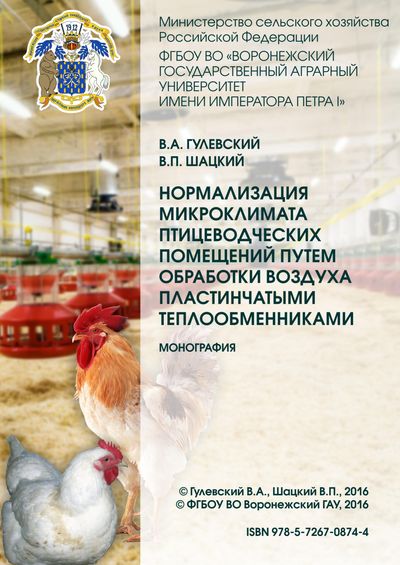 Гулевский, В. А. Нормализация микроклимата птицеводческих помещений путем обработки воздуха пластинчатыми теплообменниками : монография / В. А. Гулевский, В. П. Шацкий. — Воронеж : Воронежский Государственный Аграрный Университет им. Императора Петра Первого, 2016. — 239 c. — ISBN 978-5-7267-0874-4. — Текст : электронный // Цифровой образовательный ресурс IPR SMART : [сайт]. — URL: https://www.iprbookshop.ru/72711.html (дата обращения: 10.03.2025). — Режим доступа: для авторизир. пользователей