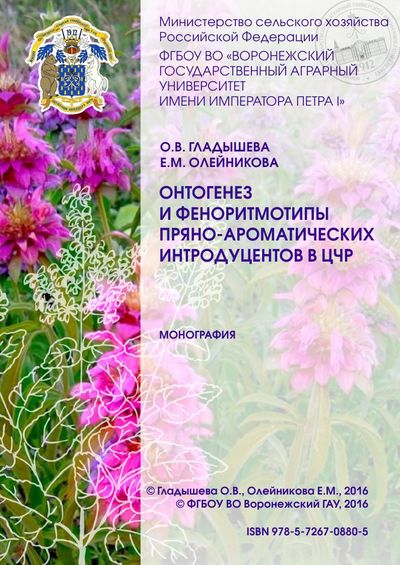 Гладышева, О. В. Онтогенез и феноритмотипы пряно-ароматических интродуцентов в ЦЧР : монография / О. В. Гладышева, Е. М. Олейникова. — Воронеж : Воронежский Государственный Аграрный Университет им. Императора Петра Первого, 2016. — 199 c. — ISBN 978-5-7267-0880-5. — Текст : электронный // Цифровой образовательный ресурс IPR SMART : [сайт]. — URL: https://www.iprbookshop.ru/72713.html (дата обращения: 11.03.2025). — Режим доступа: для авторизир. пользователей
