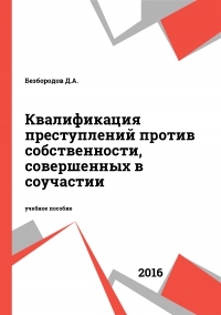 Безбородов, Д. А. Квалификация преступлений против собственности, совершенных в соучастии : учебное пособие / Д. А. Безбородов. — Санкт-Петербург : Санкт-Петербургский юридический институт (филиал) Академии Генеральной прокуратуры РФ, 2016. — 56 c. — Текст : электронный // Цифровой образовательный ресурс IPR SMART : [сайт]. — URL: https://www.iprbookshop.ru/73009.html (дата обращения: 25.07.2023). — Режим доступа: для авторизир. пользователей