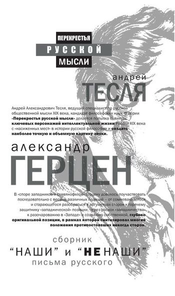 Современный читатель и сейчас может расслышать эхо горячих споров, которые почти два века назад вели между собой выдающиеся русские мыслители, публицисты, литературные критики о судьбах России и ее историческом пути, о сложном переплетении культурных, социальных, политических и религиозных аспектов, которые сформировали невероятно насыщенный и противоречивый облик страны. В книгах серии «Перекрестья русской мысли с Андреем Теслей» делается попытка сдвинуть ключевых персонажей интеллектуальной жизни России XIX века с «насиженных мест» в истории русской философии и создать наиболее точную и обьемную картину эпохи. Александр Иванович Герцен - один из немногих больших русских интеллектуалов XIX века, хорошо известных не только в России, но и в мире, тот, чье интеллектуальное наследие в прямой или, теперь гораздо чаще, косвенной форме прослеживается до сих пор. В «споре западников и славянофилов» Герцену довелось поучаствовать последовательно с весьма различных позиций - от сомневающегося и старающегося разобраться в аргументах сторон к горячему защитнику «западнической» позиции, через раскол «западничества» к разочарованию в «Западе» и созданию собственной, глубоко оригинальной позиции, в рамках которой синтезировал многие положения противостоявших некогда сторон. Вниманию читателя представляется сборник ключевых работ Герцена в уникальном составлении и со вступительной статьей ведущего специалиста и историка русской философии Андрея Александровича Тесли.