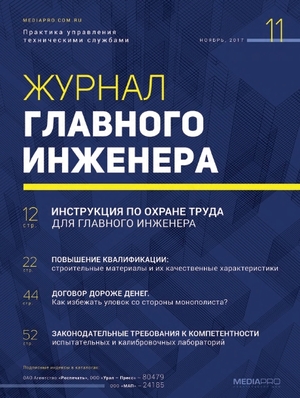 «Журнал главного инженера» – ежемесячное информационно-практическое издание для эффективного управления техническими службами предприятия. Основные темы «Журнала главного инженера»: Нормативные документы и комментарии; Обмен опытом; Управление производством и персоналом; Безопасность производства; Управление качеством; Техническая эксплуатация оборудования; Организация эксплуатации зданий и сооружений, инженерных систем и сетей; Идеи и инновации; Энергосбережение и энергоэфективность.