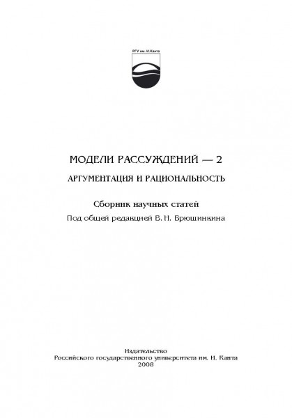Сборник статей содержит материалы Всероссийского семинара «Модели рассуждений — 2: Аргументация и рациональность», проведенного в апреле 2008 г. в городе Светлогорске Калининградской области, а также результаты научных исследований преподавателей и аспирантов кафедры философии и логики исторического факультета Российского государственного университета им. Иммануила Канта.