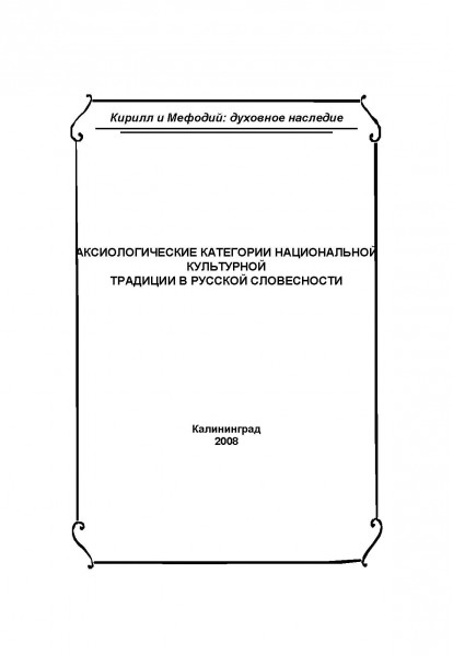 Аксиологические категории национальной культурной традиции в русской словесности : материалы Международного научного семинара / А.В. Моторин [и др.].. — Калининград : Балтийский федеральный университет им. Иммануила Канта, 2008. — 125 c. — ISBN 978-5-88874-931-9. — Текст : электронный // Цифровой образовательный ресурс IPR SMART : [сайт]. — URL: https://www.iprbookshop.ru/7349.html (дата обращения: 05.12.2025). — Режим доступа: для авторизир. пользователей